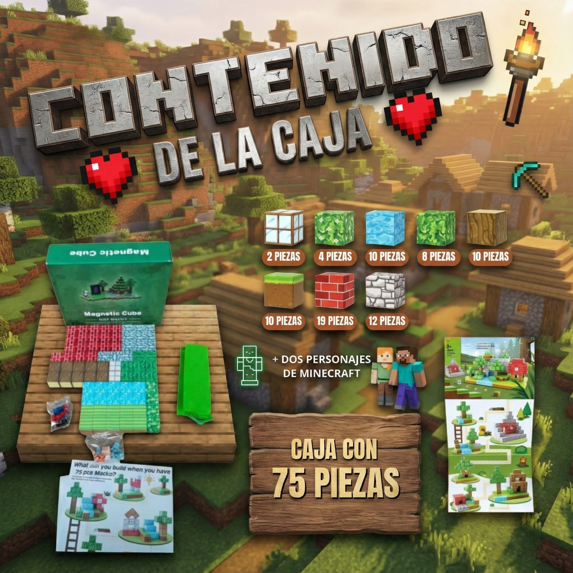 ¿Tus hijos pasan demasiadas horas frente a la pantalla? Con Block Craft™, transforma esa pasión por el mundo pixelado en una actividad física, educativa y fascinante. Escucha el satisfactorio "click" de los imanes al conectarse y mira cómo construyen castillos, minas y refugios estables en segundos.